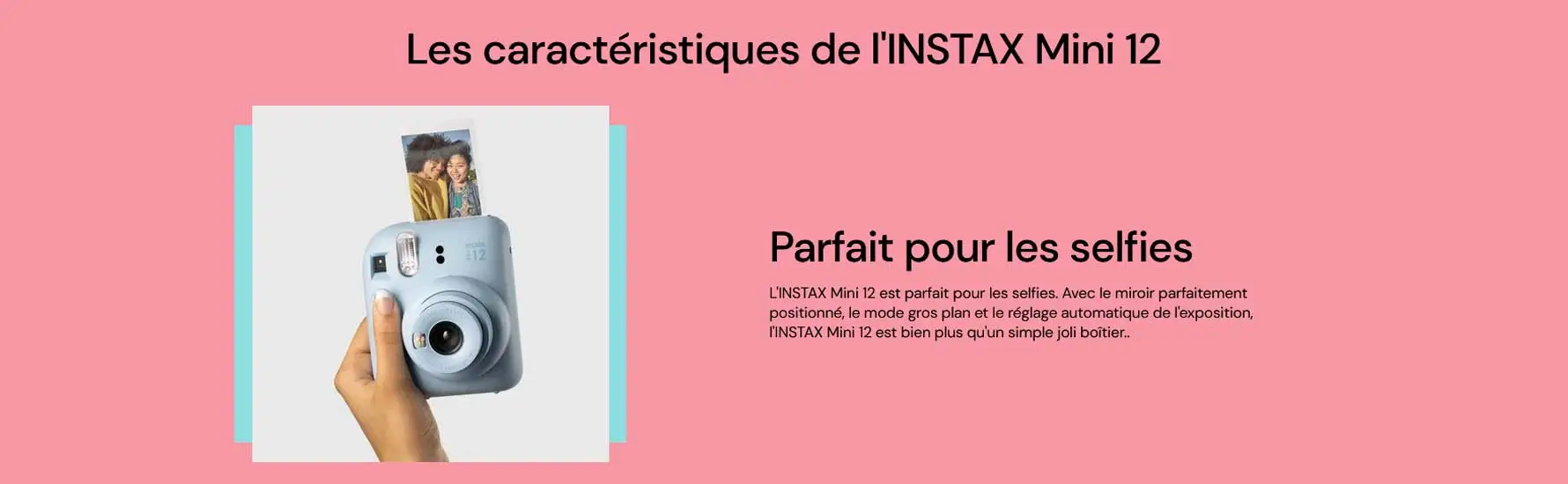 L'INSTAX Mini 12 est une caméra analogique qui offre l'expérience authentique de la photographie instantanée. Facile à utiliser, cette caméra est idéale pour tous, des débutants aux experts.