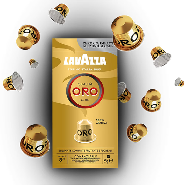 Appréciez la symphonie parfaite des meilleurs grains de café Arabica, enrichie de notes fruitées et florales. Tout ceci constitue la Qualità Oro, la véritable définition de l'élégance.